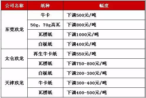 玖龙原纸震荡下跌200—1000元/吨!